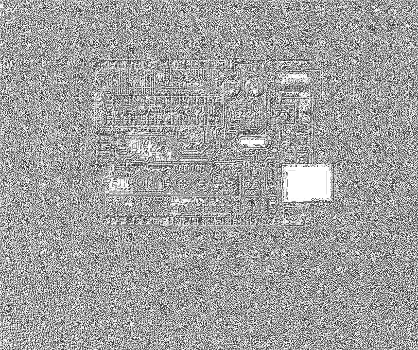 The following image contains the differences between pcb1.jpg and pcb2.jpg, found using the difference checker algorithm.